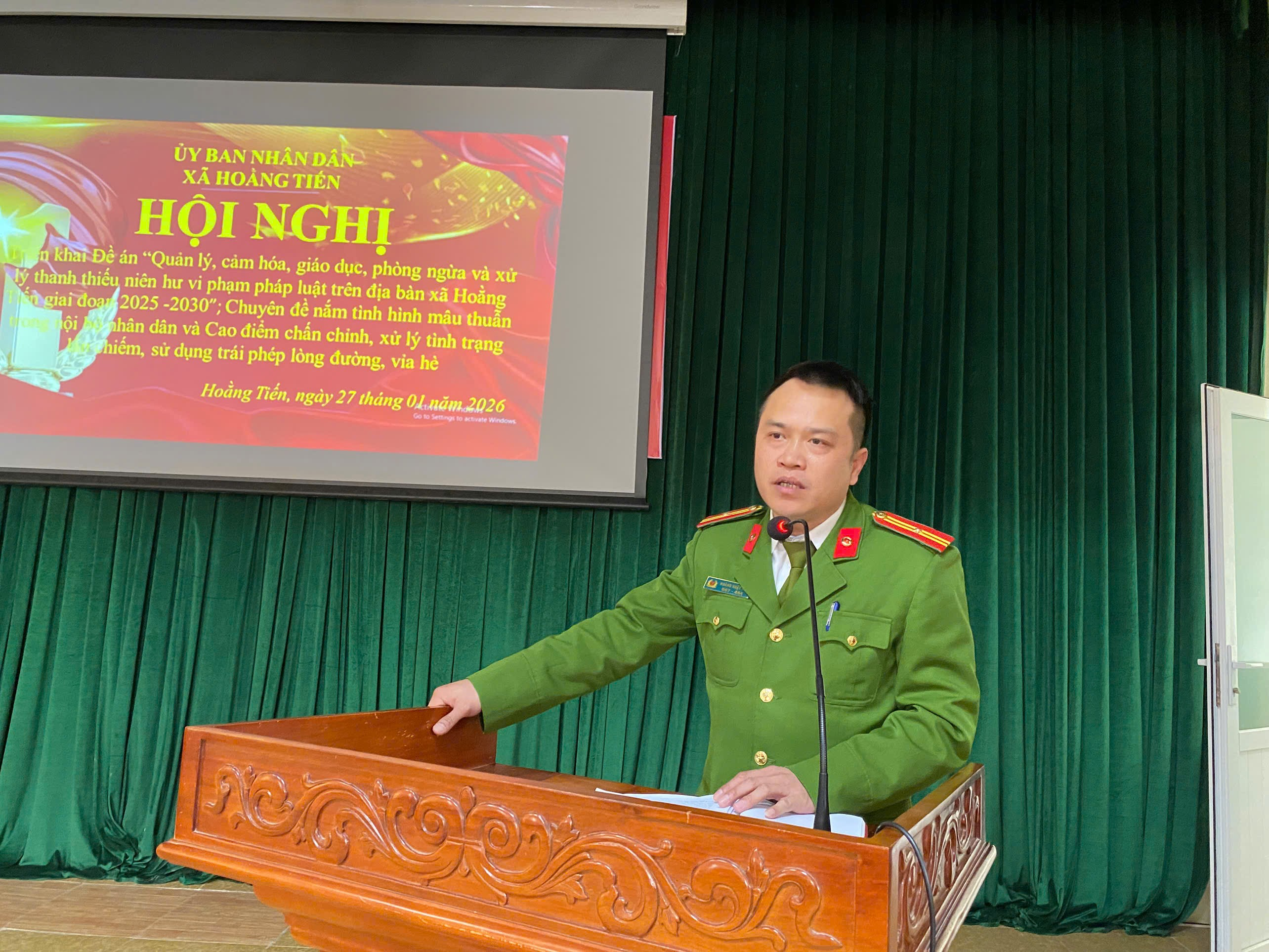 Tại hội nghị, đồng chí Nguyễn Văn Tình, Phó Trưởng Công an xã đã trình bày tóm tắt Đề án 3320, làm rõ nguyên nhân, điều kiện phát sinh thanh thiếu niên hư, phân tích tác hại của tình trạng này đối với xã hội, đồng thời nhấn mạnh yêu cầu đặt ra trong công tác quản lý, giáo dục, phòng ngừa vi phạm pháp luật trong thanh thiếu niên ở cơ sở.
