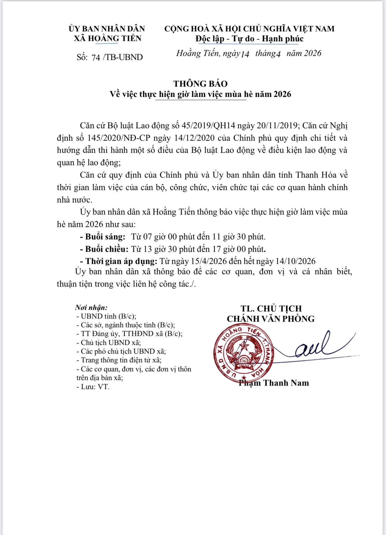 Để Nhân dân, cán bộ, đảng viên trong toàn xã, các thanh niên và gia đình có con em trong diện thực hiện nghĩa vụ quân sự năm 2026 được biết, Hội đồng Nghĩa vụ quân sự xã Hoằng Tiến thông báo một số nội dung về công tác sơ tuyển nghĩa vụ quân sự năm 2026, cụ thể như sau: