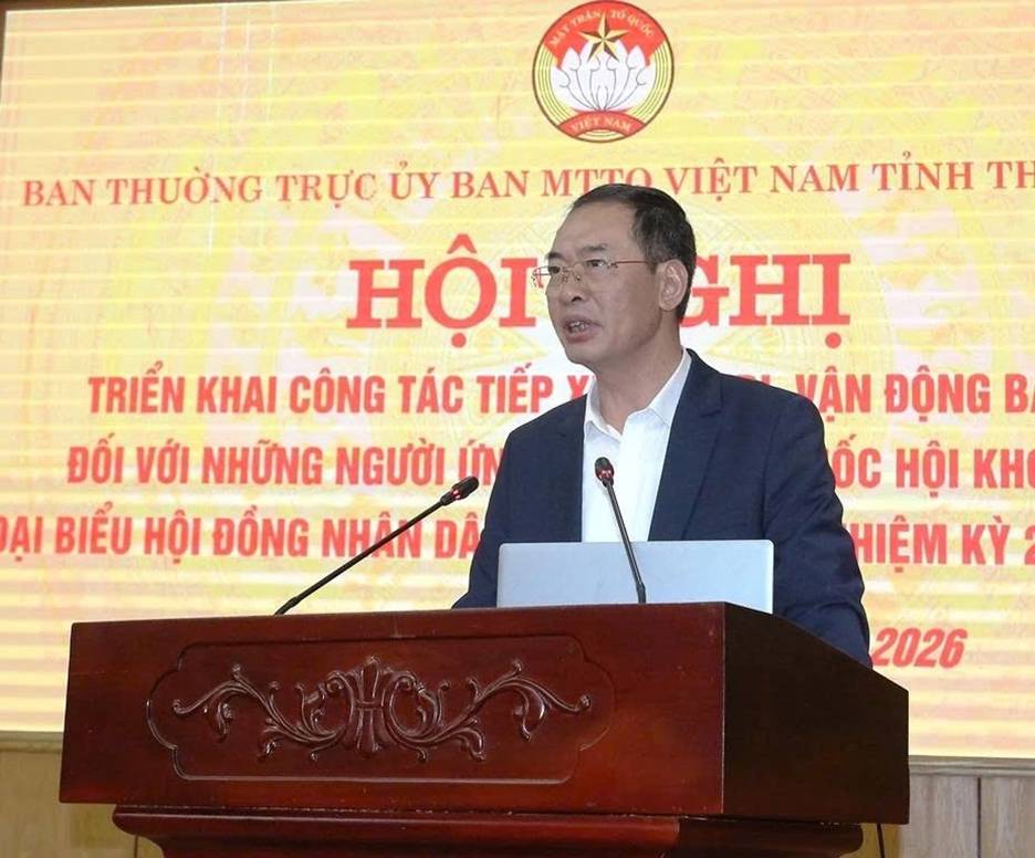 Sáng 24/2, Ban Thường trực Ủy ban MTTQ tỉnh tổ chức hội nghị trực tiếp kết hợp trực tuyến tới điểm cầu 166 xã, phường để gặp gỡ và triển khai công tác tiếp xúc cử tri, vận động bầu cử đối với những người ứng cử đại biểu Quốc hội (ĐBQH) khóa XVI, đại biểu HĐND tỉnh khóa XIX, nhiệm kỳ 2026-2031