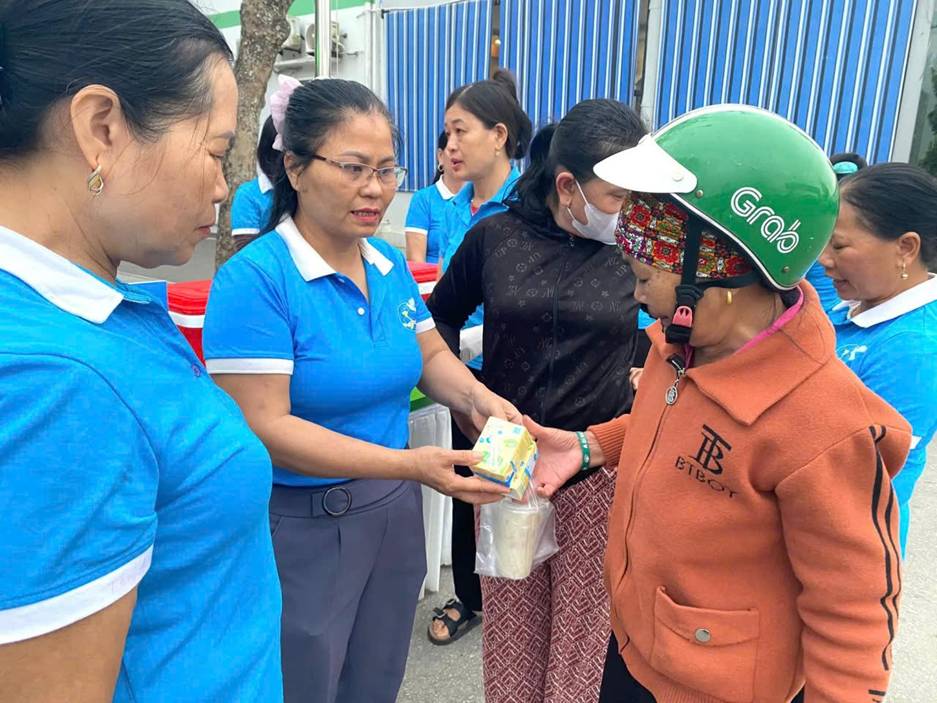 100 đến 150 suất quà cho bệnh nhân, mỗi suất gồm 1 bát cháo và 1 ống sữa, góp