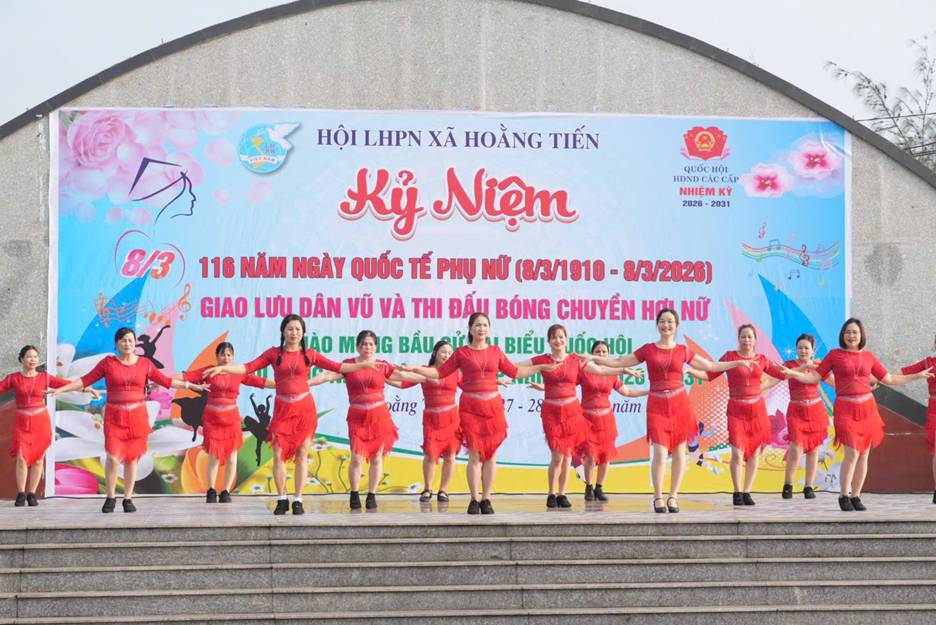 Hướng tới kỷ niệm 116 năm Ngày Quốc tế Phụ nữ 8 tháng 3 và thiết thực chào mừng cuộc bầu cử đại biểu Quốc hội khóa mười bốn, đại biểu Hội đồng nhân dân hai cấp nhiệm kỳ 2026 – 2031, sáng ngày 27/2, Hội Liên hiệp Phụ nữ xã Hoằng Tiến đã tổ chức chương trình giao lưu dân vũ và bóng chuyền hơi nữ năm 2026, tạo không khí thi đua sôi nổi, tăng cường giao lưu, đoàn kết trong cán bộ, hội viên phụ nữ toàn xã.