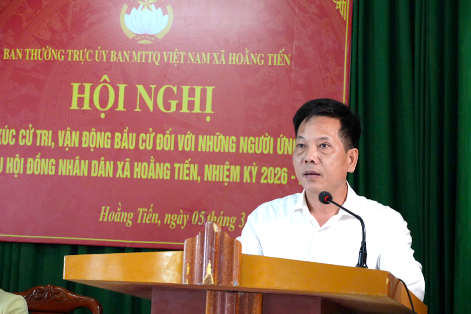Sáng 05/3, các ứng cử viên đại biểu HĐND xã Hoằng Tiến nhiệm kỳ 2026–2031 thuộc Đơn vị bầu cử số 7 đã có buổi tiếp xúc cử tri, vận động bầu cử tại thôn Phong Lan.