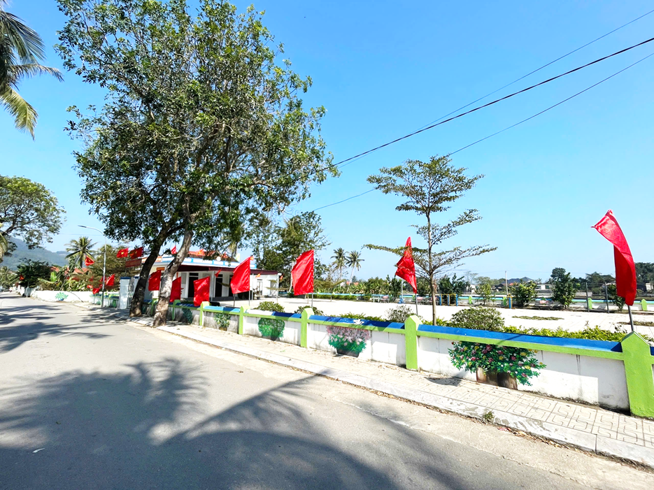cờ trên được treo đồng loạt tại tất cả các tuyến đường chính trong thôn, bắt