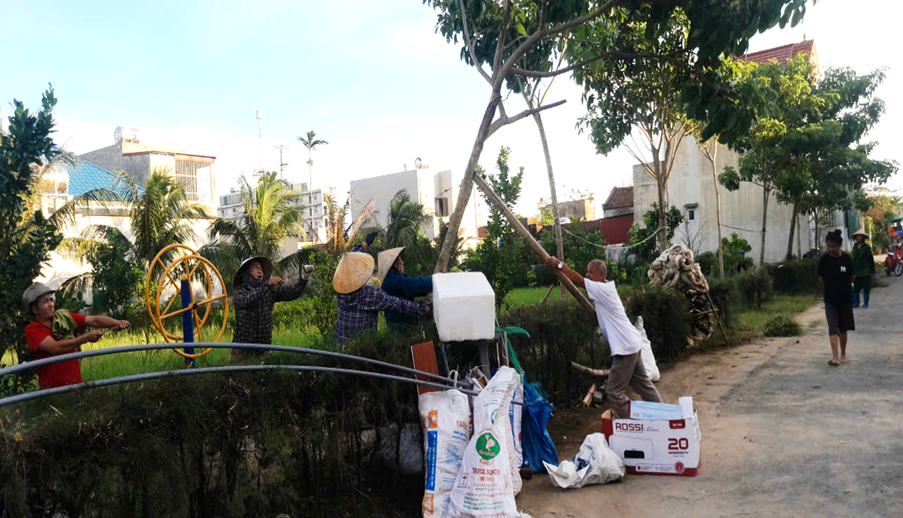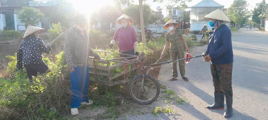 bà con nhân dân đồng loạt quét dọn, thu gom rác, phát quang cây cỏ, nạo vét